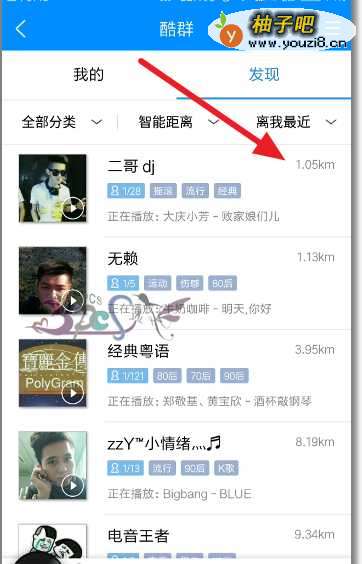 2进入之后,可以看到附近的酷群。这里需要开启定位才能看到。