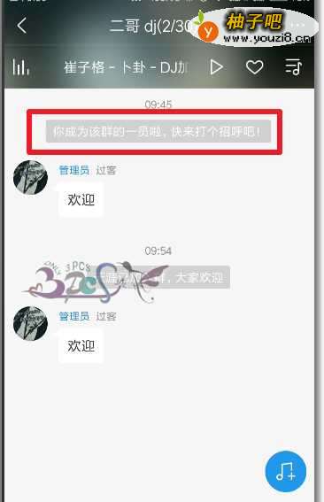 6点击进入的群聊,酷群的聊天除了文字,最重要的当然是用音乐来交流了。