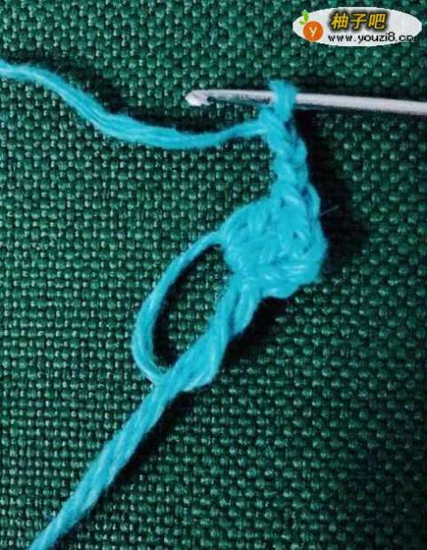 7拉花4针,在下一个花孔里面中长针3针,拉花1针。在正方形的顶角花孔里面钩中长针3针,拉花3针,钩中长针3针。