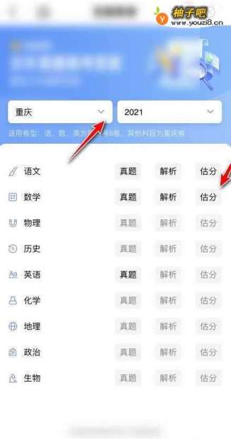 2选择所在城市与考试年份,点击要预估科目后面的估分。