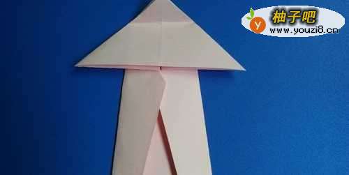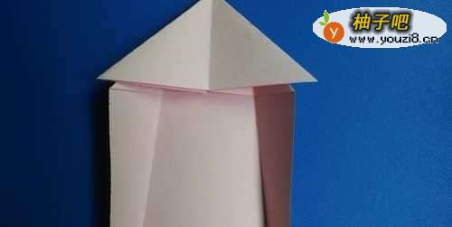 5把顶部的三角形向下方折叠,这是长裙子的领子,左右两边向内折叠,这是做长裙子的袖子,如下图所示。