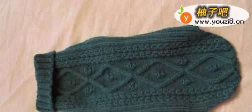 6当然,如果家里有宽大的粗针男士毛衣,也可以拿来用。我们只需要剪出一个袖子,然后再剪出狗狗前肢的洞,就可以做一件衣服。但是由于毛衣容易脱线,我们可以想办法处理一下剪刀剪过的地方。