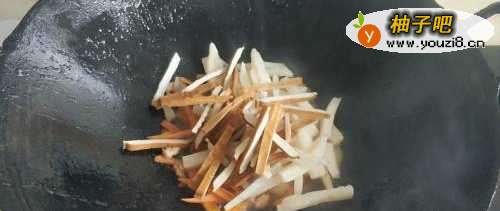 5再往锅里面倒入藕丝。