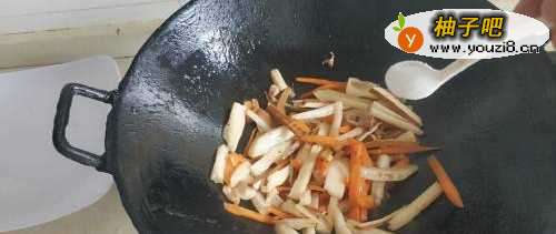 6加入切好的香干丝。
