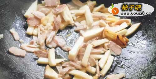 3加入肉片大火翻炒。