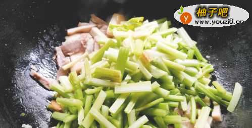 4再放入芹菜,翻炒至芹菜断生。