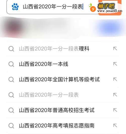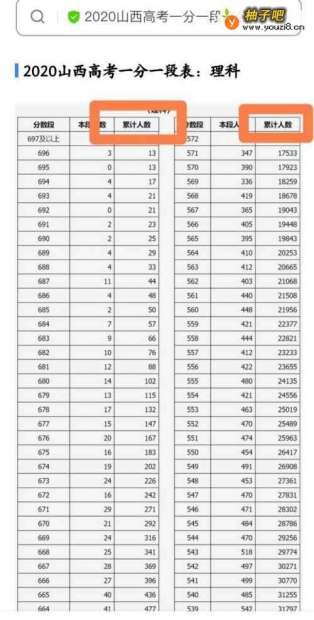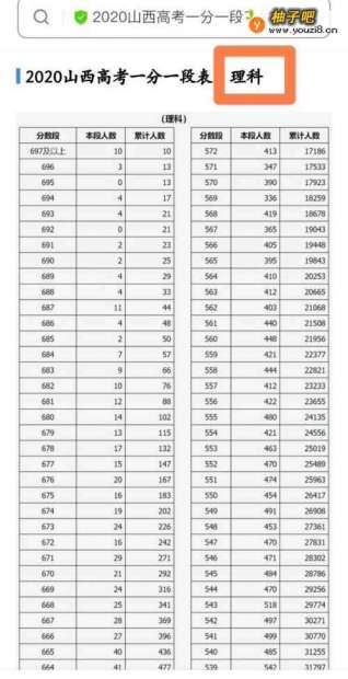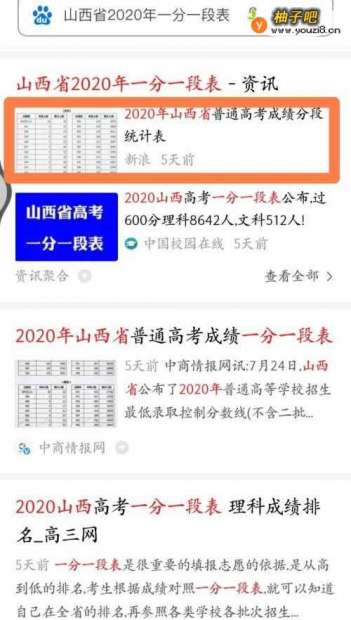 (以今年的山西省为例,输入“山西省2020年高考一分一段表”)