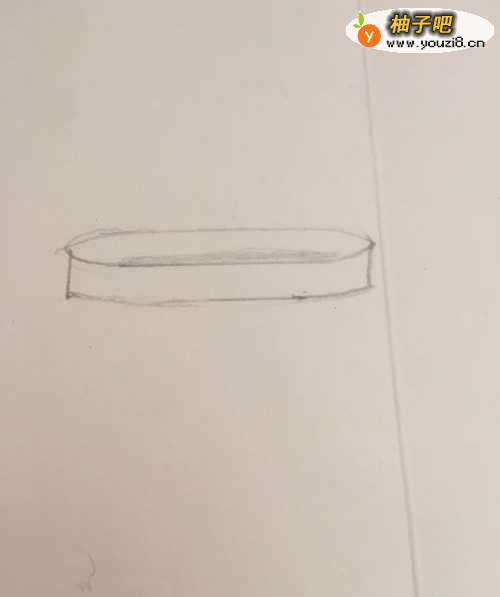 第一步 先画一个扁圆形 作为西裤的裤腰