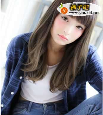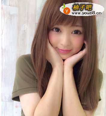 2简约的金棕色长直发发型搭配可爱减龄的短刘海,确实挺萌萌哒的,刘海的设计可以突出水汪汪的大眼睛,特别惹人爱。