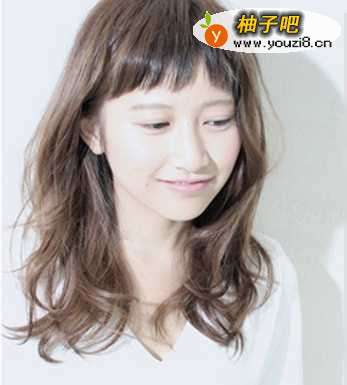 这款及眉刘海微微斜分的设计可以隐约透出额头,显得比较清爽干净,再搭配带有慵懒气息的长卷发,甜美又自然哦。