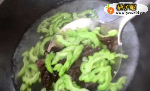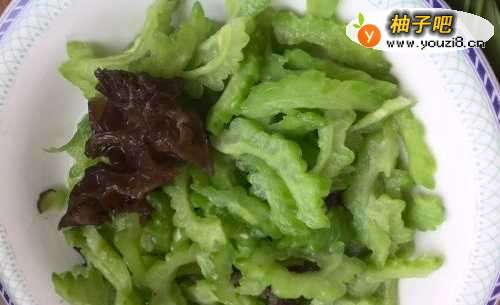 4将苦瓜和木耳,用开水焯一下(时间要短)。
