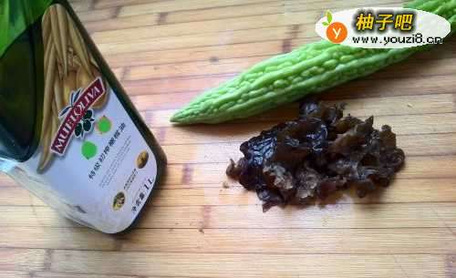 准备好食材:苦瓜一个,木耳提前泡好。