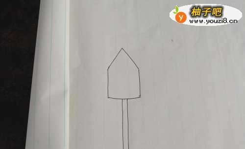 准备好绘画用的纸和笔,先在纸上画上一个房子的形状。