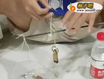 2把秤盘用细线拴在a槽上,在b槽上也拴上一根细线,这一处的细线是用来当秤的提手的,在用一根细线拴上一把锁,这样秤砣也完成了。