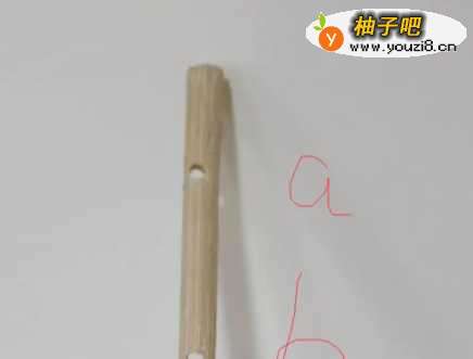 我们先找一根竹筷子,然后在筷子粗的一端,1-2厘米的地方上,用小刀刻上ab两个槽。