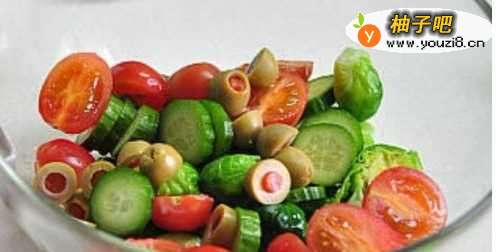 3捞出来,放到凉水下冲一分钟,如果有冰水就浸入冰水里,可以保持橄榄和青豆的翠绿。