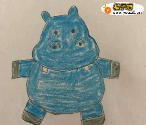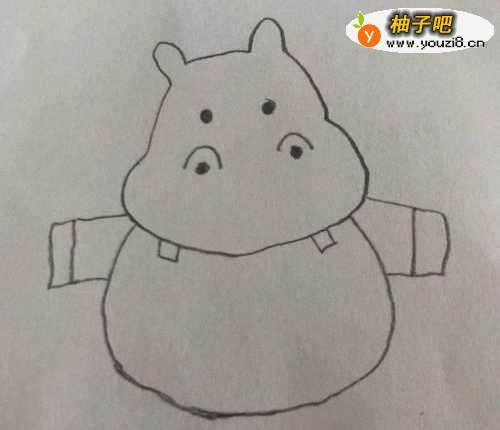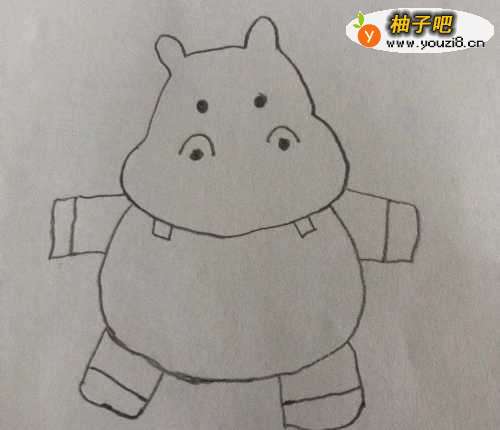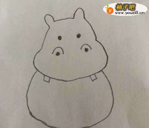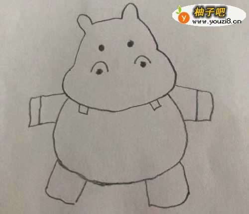 3在身体 的两侧画上河马的两条前腿,见下图