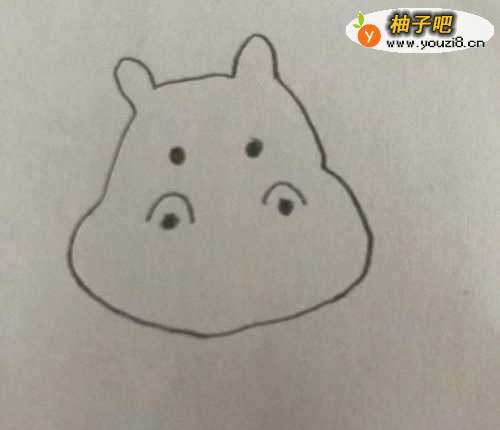 在干净的白纸上画上河马的头部,并且画上河马的五官,见下图