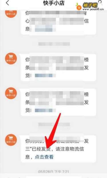 7总结:快手---个人中心---私信---快手小店---物流信息。