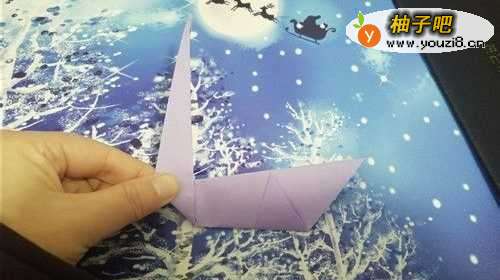 6我们把尖角向里折,然后再向外折。一只可爱的天鹅就折好了,下面是完成图。
