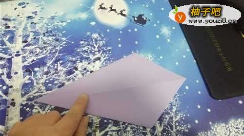 3把左侧的角向右折,再把彩纸从中间对折,如图所示。