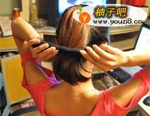 6直到头发卷到头后,再用手把海绵盘发器掰弯曲。