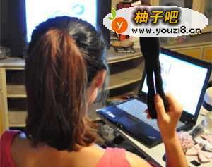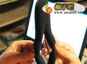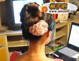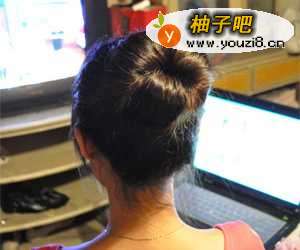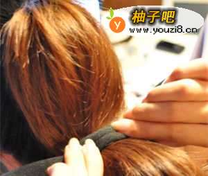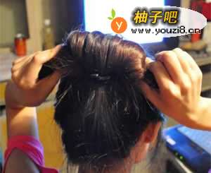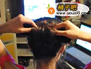 3然后把头发穿过之前已经掰开的海绵盘发器中间的洞。