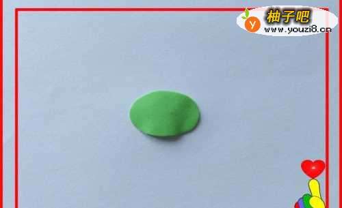 6取浅绿色彩泥适量,制作一个椭圆片。
