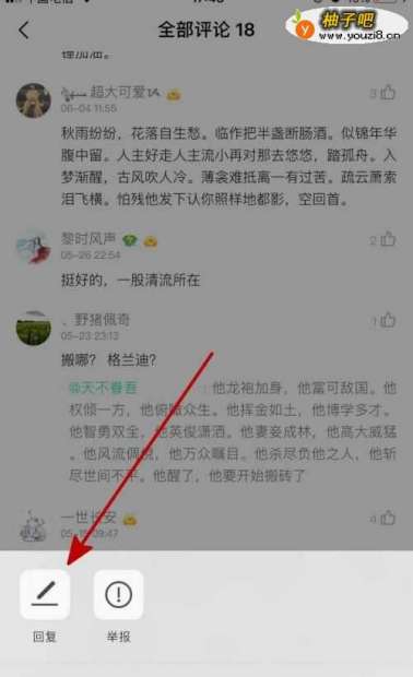 4然后点击其中一条评论,在弹出的窗口中点击“回复”即可。如下图