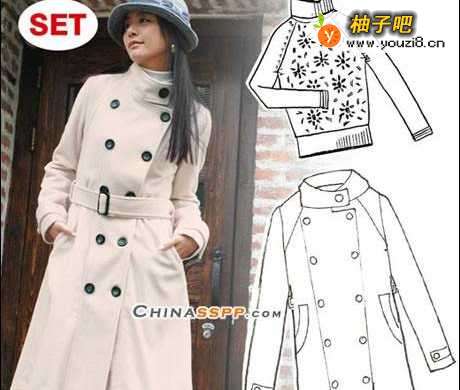 2米白色双排扣长大衣,合身的剪裁表现女性自然的美态、气质 。