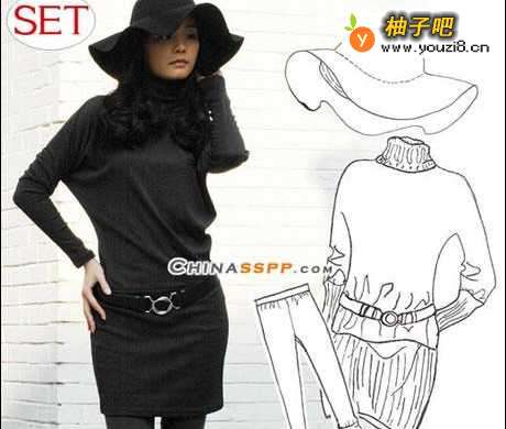 3黑色针织裙,低腰的设计用宽腰带来塑造黄金比例 。