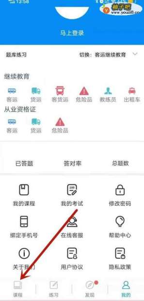 手机打开继续教育软件,切换青海所属城市,验证身份登录,点击发现课程报名学习。