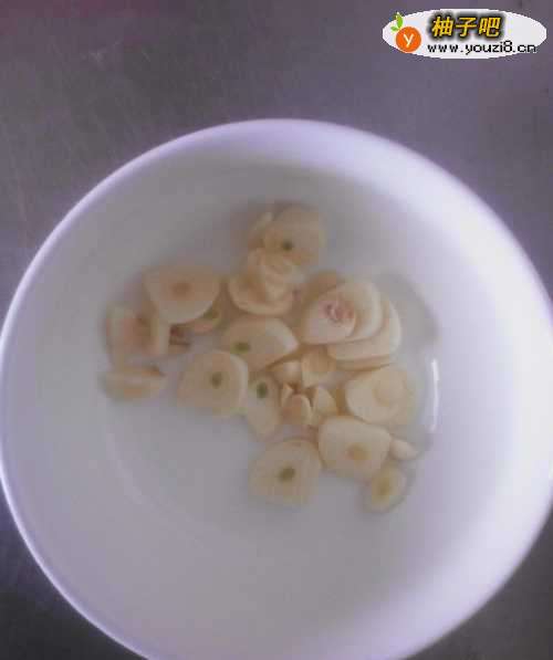 3五瓣蒜切成片。