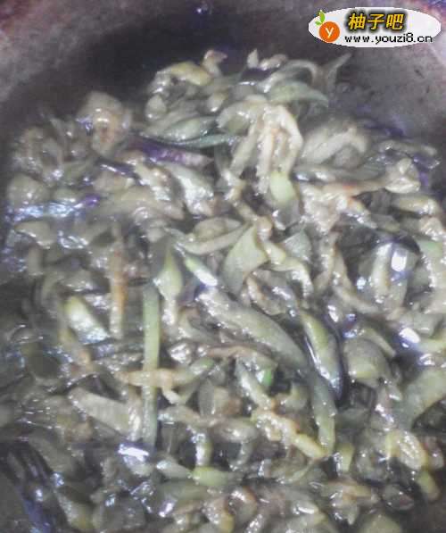 5油开,放入切好的茄子丝翻炒。