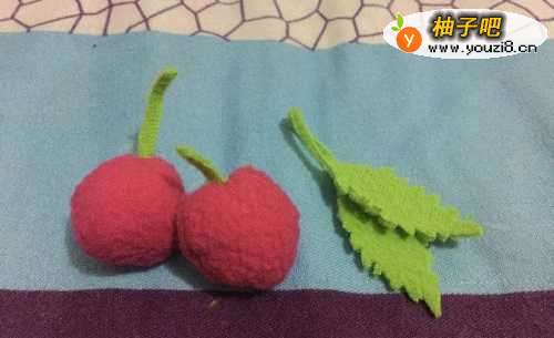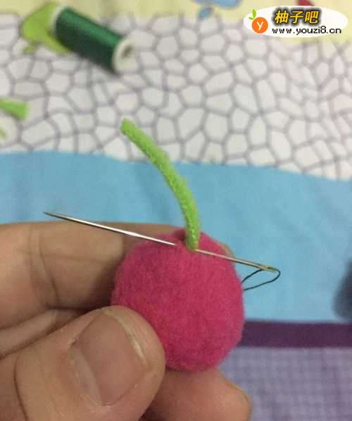 4给两个小球都缝上绿色的芯儿
