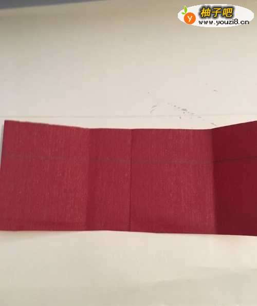 第一步 先把一张长20厘米X7厘米的长方形卡纸 从右向左折叠 左头留出1厘米