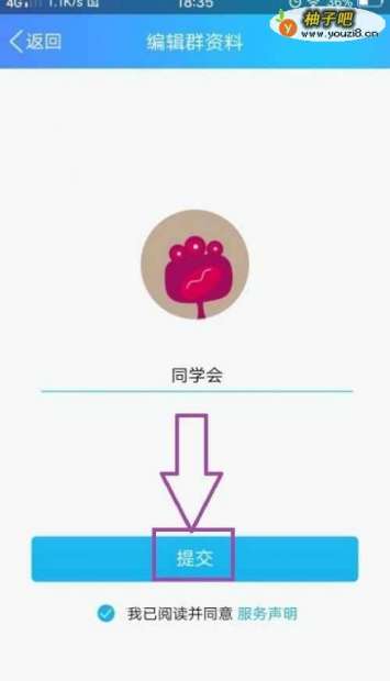 7在页面上为我们的群填写一个有意思的群名称,并且设置我们的群头像,然后点击“提交”,即可创建群了,就可以在群里和朋友们聊天沟通交流了。