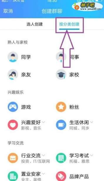 5当然了我们也可以使用“按分类创建”,通过“按分类创建”来建立群,这样方便与我们有共同爱好的朋友一起聊天了。