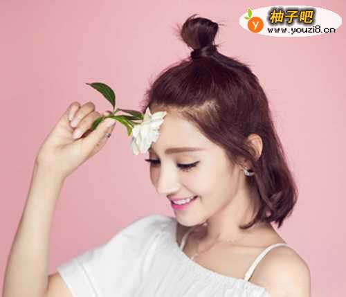 韩式短发半扎式丸子头 时髦发型让人不爱都难