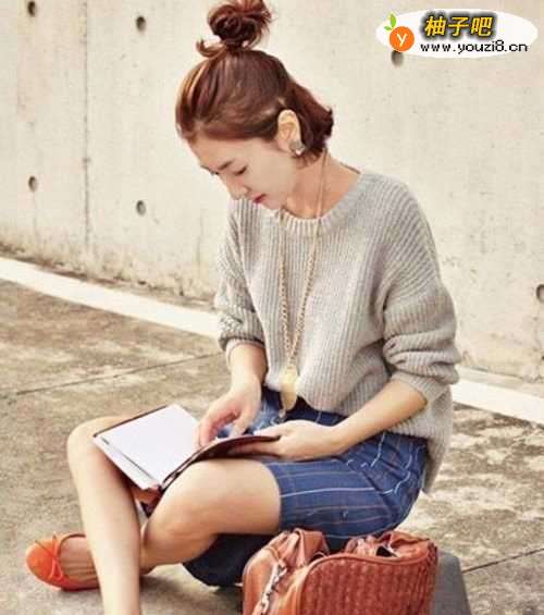 4韩式短发本身就很妹子青睐,现在还扎上流行到不行的半丸子头,想不气质出众都难吧。