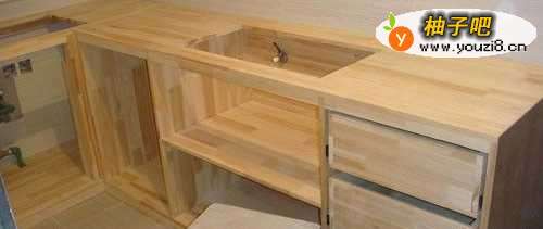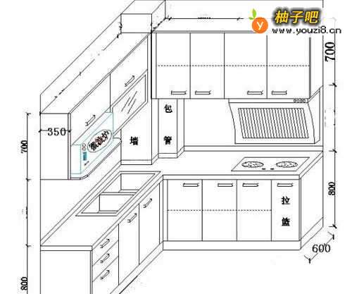 下柜高度按照我们东方人的体形,厨房的操作台面高度应该为85-90cm,以使用者站立时手指能触及水槽底部为较适宜。另外,操作台下沿边应留出高7.6cm、深10cm的凹槽,可以放入双脚,这样便于使用者靠近操作台操作。