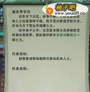 对话接取任务[盛名传宇内],至图中标示2处寻找npc【裴元】。