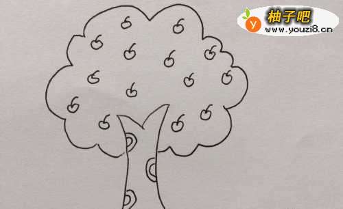 3然后画上小苹果,和树干上面的生长痕迹。