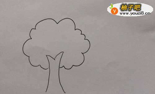 准备好画画的笔和纸,我们先来画果树吧,先画出果树的树干。