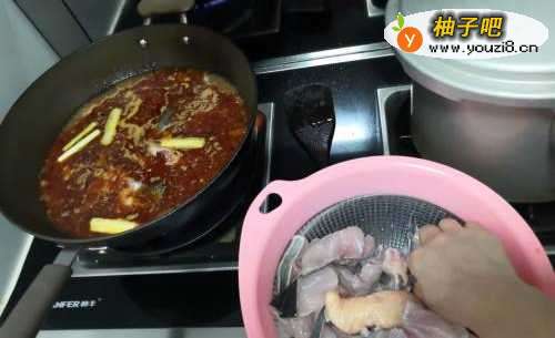 1、将切片好的鱼进行清理,再抹上一层盐进行腌制。2、准备好水煮鱼的系列调料,干辣椒等。3、往调料上淋上一层鱼调料。4、起锅烧油。5、放入调料进行翻炒。6、爆香后,加入烧好开水。7、往锅中慢慢放入鱼。8、将事先准备好的黄瓜去皮切块。9、将芹菜切成段状。10、将火调至中火,煮半小时即可。