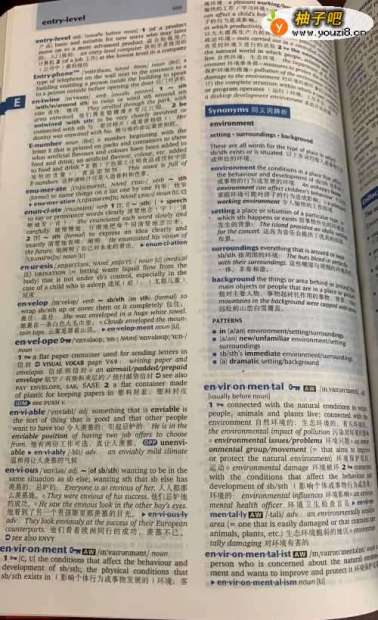 5翻到哪一页都有可能,比如说我们翻到这一页(如图),因为这一页的单词首字母肯定是e了,所以我们看下一个字母,environmental第二个字母是“n”,而这一页所有单词第二个字母全部为“l”,然后关键的一步来了:我们开始想l在字母表中是在n的前面还是后面呢?一番思索后发现l在n的前面,所以我们要想找到n,就得往后翻