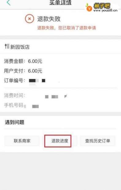 6在处理过程中,可以再次点击订单,进入,点击买单详情下面的“退款进度”,查看退款进度。(备注:图片为演示)