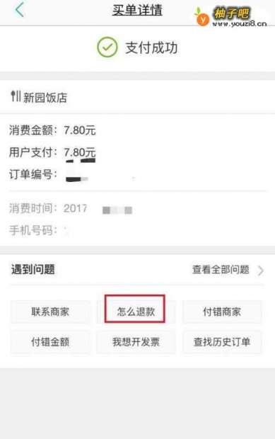 3进入订单后,显示的是“支付成功”,找到下面的“怎么退款”,进入。