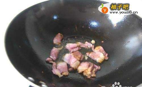 锅中放油烧热后放入腊肉片煸炒出油