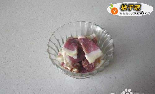 腊肉去肉皮后切成肉片